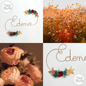 Un prénom en fil alu et des fleurs faites à la main ...